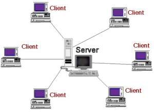 Pada jaringan ini terdapat satu atau beberapa komputer server dan komputer client. Komputer client sebagai perantara untuk dapat mengakses data pada komputer server, sedangkan komputer server menyediakan informasi yang diperlukan oleh komputer client.