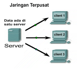 - Komputer yang berada di pusat sebagai server