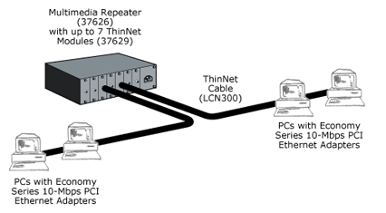 Dengan menggunakan kabel ini, jumlah komputer yang dapat dihubungkan dalam jaringan akan lebih banyak dan jarak antara komputer dapat diperbesar, tetapi biaya pengadaan pengkabelan ini lebih mahal serta pemasangannya relatif lebih sulit dibandingkan dengan thinnet.