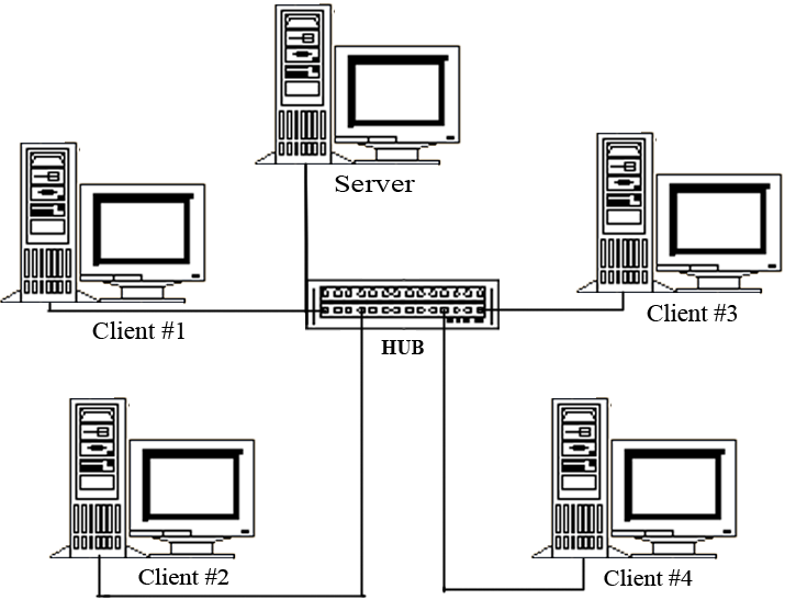 Merupakan sekumpulan komputeryang dihubungkan dengan komputer yang berada pada pusat konfigurasi yang berbentuk bintang yang berperan sebagai pengontrol komunikasi dan memberikan layanan bagi komputer lain.